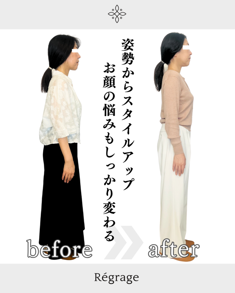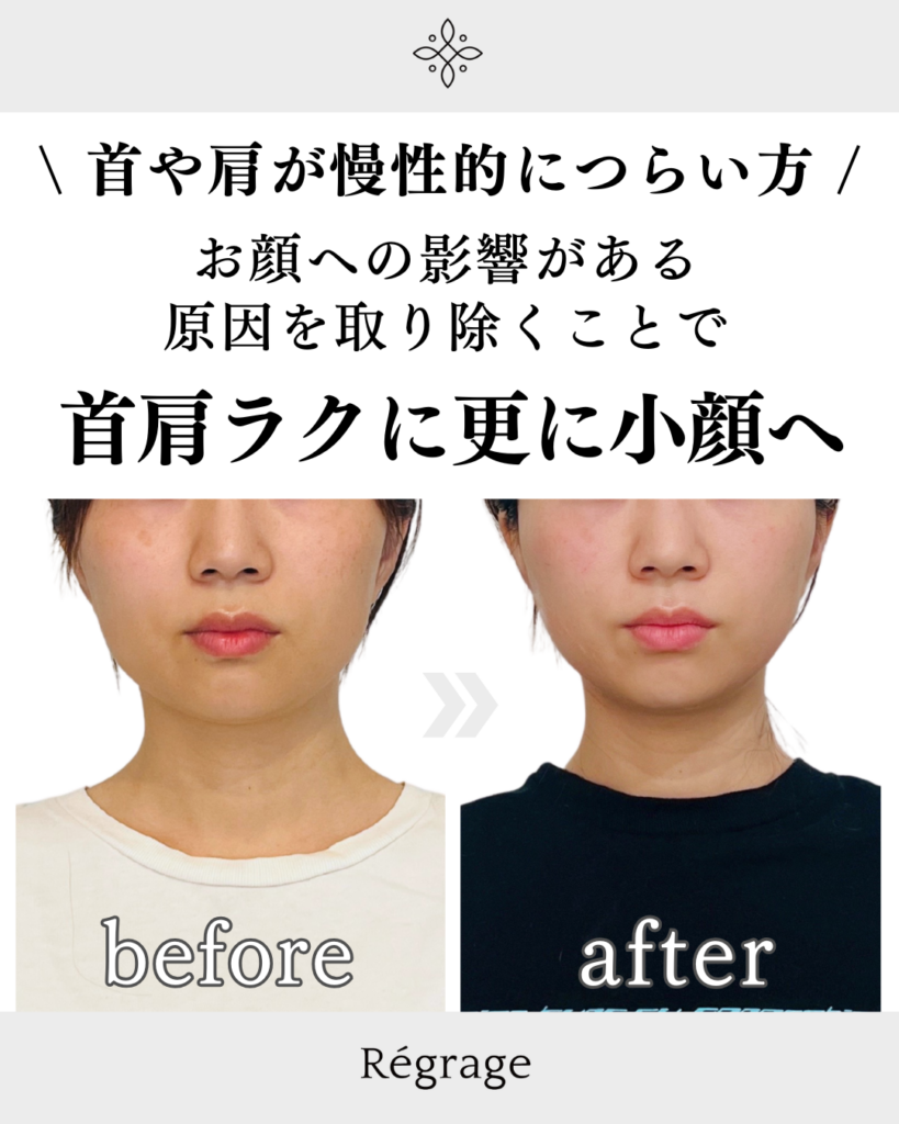 肩首の不調と疲れ顔でお悩みでしたが、姿勢から変わり一回り小顔へ。